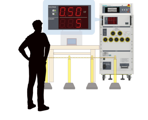 フロントパネルには離れた場所からでも瞬時に試験状態を把握できる表示パネルを搭載し、よりユーザー視点を追求したモデルになりました。危険な試験でも、試験器との距離をとった試験状況が確認可能です。