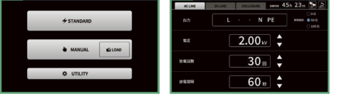 10.1インチLCDモジュールの大画面操作パネルを採用。当社比最大サイズの操作パネルによる抜群の視認性と当モデル用に最適化されたUIによる確かな操作性により、より試験設定の効率化を実現しました。また、立った状態でも座った状態でも操作可能な高さに設計されています。