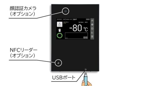 警報等のイベント履歴や、温度、扉開閉警報の履歴を記録・表示します。各履歴はUSBメモリーへデータ出力が可能。