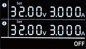 | GPE-2323A | 2 | 0-32V / 0-3A | 0-32V / 0-3A | ― | ― | 0-64V / 0-3A | 0-32V / 0-6A |