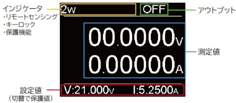 PPEシリーズはシンプルな性能ながら、2.4インチカラー液晶を搭載。アウトプットのON / OFFに関わらず設定値や各種状態、保護機能や保護設定値などが確認することができます。