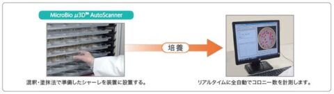● タイムラプスモニターでリアルタイムに微生物コロニーの検出・計算が出来迅速化を実現