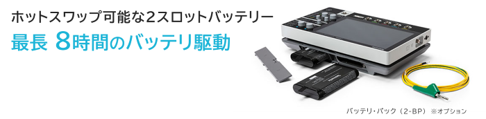 また、オプションのバッテリ・パックを使用するとバッテリを最大2個装着でき、最長8時間のバッテリ駆動が可能になります。